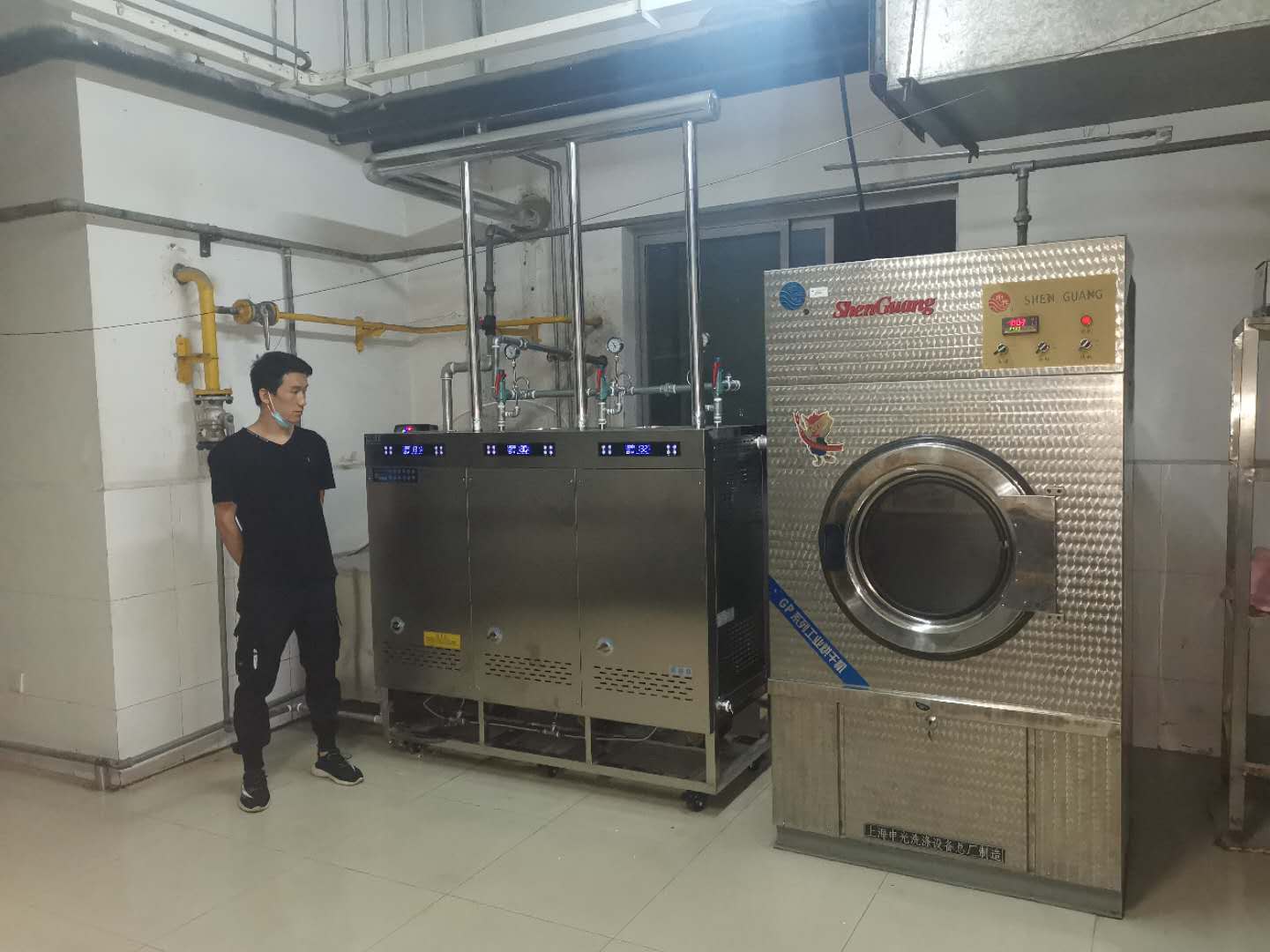 北京理工大學(xué)洗衣房,采用卓益三膽模塊蒸汽發(fā)生器為烘干機(jī)提供蒸汽,蒸發(fā)量高達(dá)200KG/H,承壓4公斤,蒸汽溫度最高可達(dá)150℃。