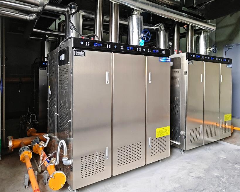 廣州逅廚食品加工客戶,由我們設(shè)計(jì)施工的1.6噸蒸汽項(xiàng)目,今天過來調(diào)式,我們現(xiàn)直奔設(shè)備間,采用多臺卓益蒸汽發(fā)生器,模塊化設(shè)計(jì),潔凈高溫蒸汽,鋁皮保溫,安裝工藝很奈斯,4公斤蒸汽壓力,主要為洗碗機(jī)、洗框機(jī)、夾層鍋,蒸箱,洗鍋機(jī)、蒸汽回轉(zhuǎn)鍋、真空速冷機(jī)等供蒸汽!