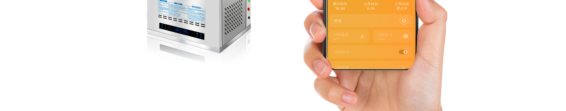 超大顯示屏,120度高溫蒸汽,故障自診,316換熱器,承壓2kg,自帶壓力控制器,高溫蒸汽機水壓范圍:0.2~0.5mpa,最佳水壓約為0.3mpa